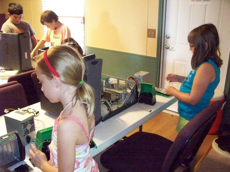 The first three days were devoted to disassembly, reassembly and then Linux installs. To be honest, we scheduled this as a 4 day event because we thought kids this young would need that much time to complete and absorb the camp.